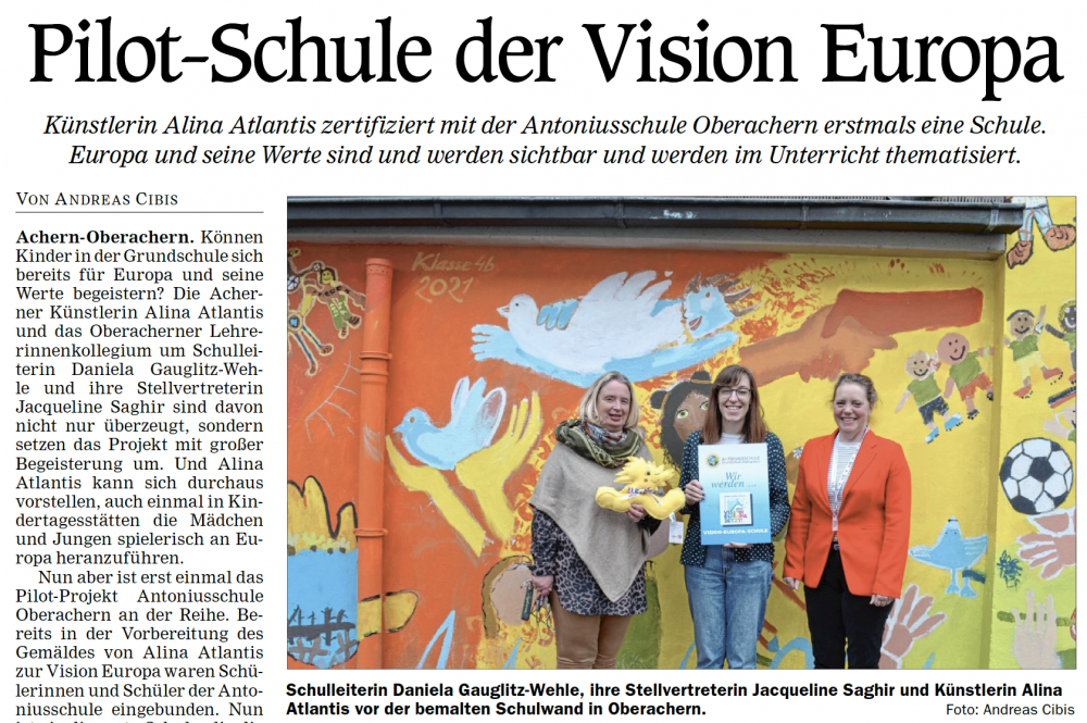 »Pilot-Schule der Vision Europa«, Mittelbadische Presse/ARZ, Donnerstag, den 18.11.2021