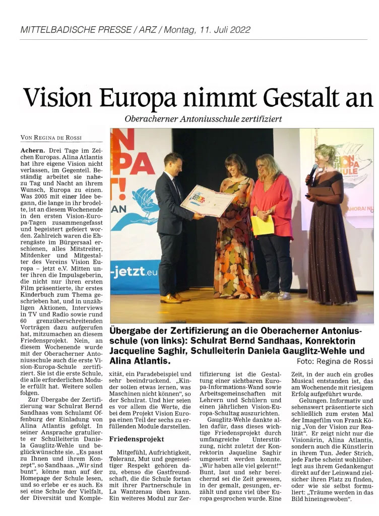 2022-07-011_MITTELBADISCHE PRESSE:ARZ_Vision Europa nimmt Gestalt an